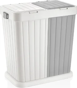 Sumpas – Wasmand – 2 Vakken – Met Touch Deksel – 80 Liter – Antraciet/Wit – 100% Gerecycled Plastic