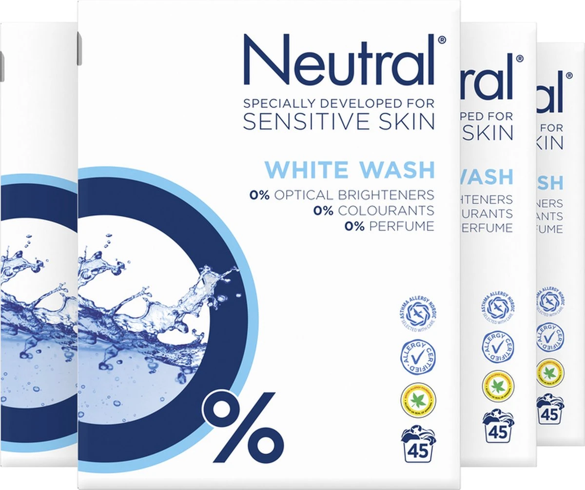 Neutral Waspoeder Wit Parfumvrij – 4×45 Wasbeurten – Voordeelverpakking